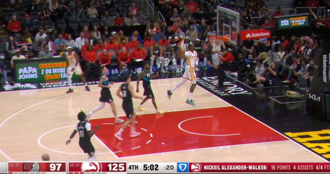 ——第三球利用开拓者的防守失误直接篮下强起,这一次小杨成了背景板